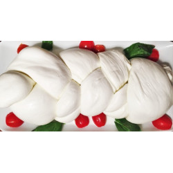 La Treccia di Mozzarella di Latte di Bufala è lavorata ad intreccio con la pasta di mozzarella.